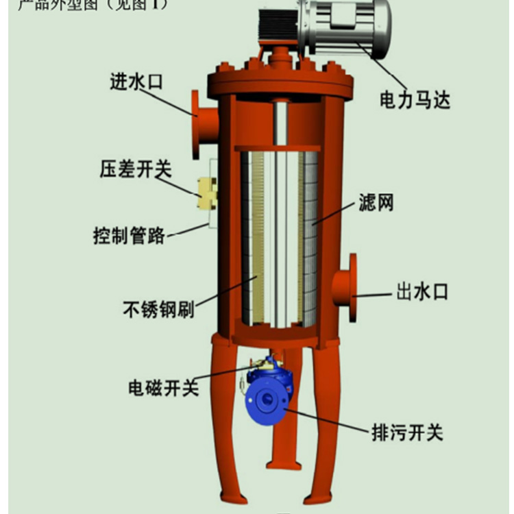 自清洗過濾器:在壓差或者設定的時間達到后,電機啟動通過傳動軸帶動內部鋼刷轉動進行清洗,清洗后的水從排污口排出,且清洗不斷流,系統不間斷供水。
