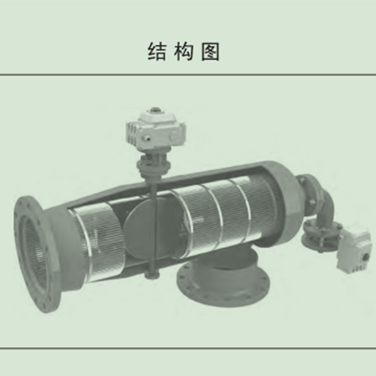 自清洗過濾器:殼體內部是由不銹鋼濾網、傳動軸、清洗刷組成,濾網可拆卸更換,如下圖所示:
