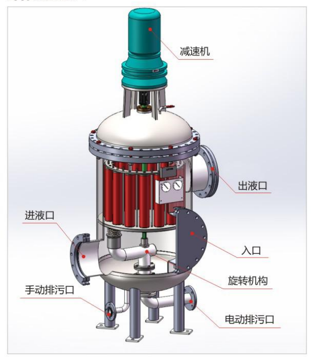 全自動多柱式自清洗過濾器為轉臂式結構過濾器,采用機電一體化設計。這種自清洗過濾器是一種集約化的過濾器,它主要由主機外殼、電動機、減速機、差壓控制器、電控箱、閥門、精密濾芯、支撐部件、反洗臂等組成。多個濾筒安裝于一個過濾器筒體內,結構緊湊。