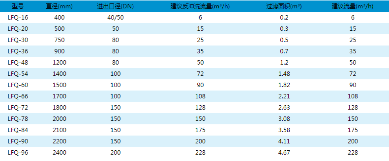 反洗耗水量: < 過濾量的1% 反洗方式:內(nèi)源反洗