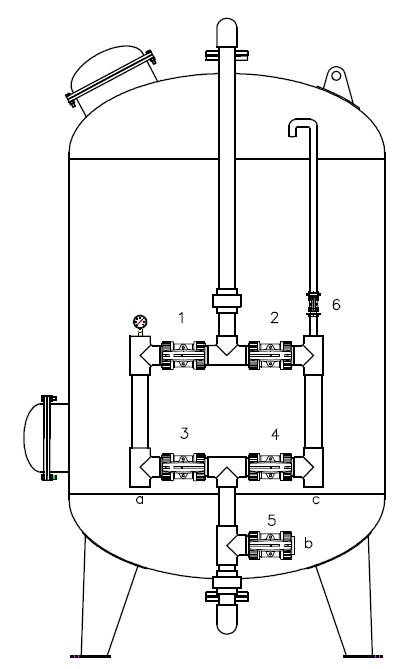 4:正洗排放閥 5:出水閥 6:排氣閥